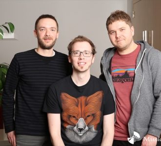 - インタビューに応じるゴーゴー・ペンギン