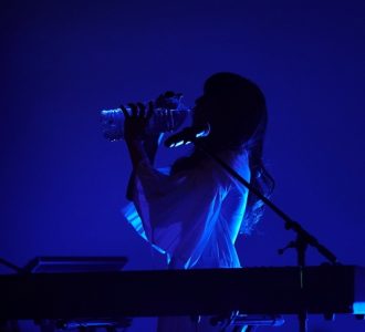 ダンサブルな「灰かぶり姫」が終了すると、ここで一旦ステージを後にするましのみ。彼女が描いた自身の似顔絵と“ぺっとぼとシャトル”が会話するという、彼女らしい世界観のストーリーがスクリーンに投影。なんとも言えないほっこりとした時間にオーディエンスを和ませ、くるくると回転しながら、再びましのみがステージに登場し、耳に残るキャッチーなメロディの「Hey Radio」を投下。ハンドマイクでステージを幅広く移動しながらパフォーマンス。そして、エンディングでのアバンギャルドなコードワークが印象的な代表曲の一つ「ハッピーエンドが見えません」と高揚感を煽るナンバーでオーディエンスを楽しませた。曲の合間には彼女らしさが出ている瞬間のひとつである、2リットルのペットボトルで水を飲む姿も確認。