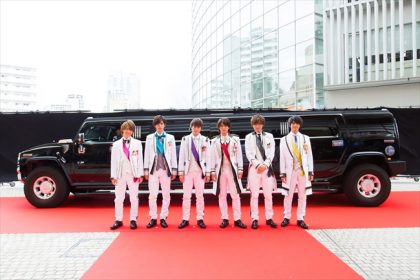 この日、6人はリムジンに乗って登場。岸優太(22)は初めての経験に「ビックリすることばかりでした」と興奮気味。岩橋玄樹(21)は「普通の車よりも車高が高くて、格好良く降りようとしたんですけど、子供がジャンプするみたいな感じになって恥ずかしかったです」と赤面。