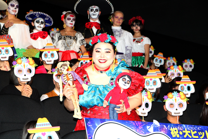 主題歌「リメンバー・ミー」は先日、『第90回アカデミー賞』で主題歌賞を受賞した。「もう最高ですよね。(私は)音楽が大好きで、ネタも音楽を使ったネタが多い。私がミゲルだったら辛いなと。(この作品の物語は)音楽が軸にあって、いろんな人が交差していく」と鍵を握る音楽にも注目してほしいとの思いを語った。