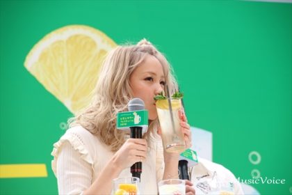 そして、フェスティバルを盛り上げるため会場にスペシャルゲストとして2人が登場。EXILEなどLDH所属のアーティストらが飲みの席で欠かさず飲むと公言しているレモンサワー。Amiは「レモンサワーは大好きです。事務所の公式ドリンクなので」とレモンサワー好きをアピール。