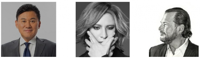 左から三木谷代表理事、YOSHIKI、ベニオフ会長