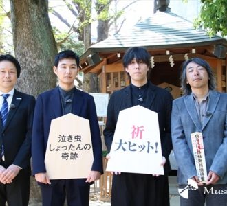 RADWIMPSの野田洋次郎と俳優の松田龍平が9日、東京・鳩森八幡神社で出演する映画『泣き虫しょったんの奇跡』(豊田利晃監督、今秋公開)のヒット祈願をおこなった。ヒット祈願には、豊田監督と映画原作者のプロ棋士・瀬川晶司五段も参加した。プライベートでも交流のある野田と松田。野田は、普段見ることのない松田が演技について真剣に悩む姿に「そんなところは見たことなかったので、少し嬉しかった」と撮影を振り返った。