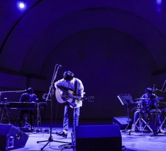 キーボードにトオミヨウ、カホーンに原治武を引き連れ、ステージに登場した石崎ひゅーい。「この曲から石崎ひゅーいは始まった」と一言告げ、デビュー曲「第三惑星交響曲」からライブはスタートした。