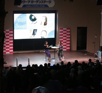 収録開始時には降っていた雨は、中盤から上がっていた。それでも、ジェットコースターなどのアミューズメント施設が取り囲むステージ前の地面やウッドデッキは変わらず雨に濡れていた。しかし、それが、施設の暖色のライトを反射させ、幻想的な空間を映し出していた。
