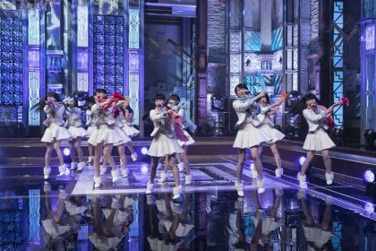 シンセの音が印象的に導入する。白一色の衣装。クールな表情でビターな色気を出す。静かなサウンドのなかでダイナミックなダンス。白い衣装はライトによって赤く染まる。一糸乱れぬダンスパフォーマンスは華やかで優雅でまるで白鳥のよう。その反面、幼さの残る彼女達の表情は安心感を与える。様々なコントラストをもって表現して魅了した。その後、再び登場したモーニング娘。'18は「五線譜のたすき」を披露。ストリングスサウンドが広がりを与え、彼女たちもそのサウンドに包まれるなか、ハマ・オカモトとのコラボレーションで、しっとりと叙情的に歌い上げる。この曲はモーニング娘。が「愛の種」でメジャーデビューが決定した11月30日にリリースされ、それを継承する意志が込められた重要な1曲。丁寧に情感を込めた歌声で魅了した。4小節に一回転調するという難易度の高さの楽曲で、それをしっかりと歌い上げる彼女たちに感心する本間昭光。