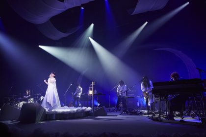 そして、「憧れていたバンドメンバーの音に包まれて、そして何より一番は来てくれたみんなの顔を見ながら歌うことができて本当にとっても幸せでした。こうやってライブをしていると、これが本当に瞬間を生きるってことなんだなと思うんです。未来のことを考えるのも大事ですけど、目の前のことを大切にしていきたいという気持ちを歌った曲があります。そんな“瞬間を生きる”ということを歌詞にしたいなと想って作った曲です」と話すと切なくも優しく「祈りのメロディ」を歌い上げ、観客の心を引き込み本編は終了した。