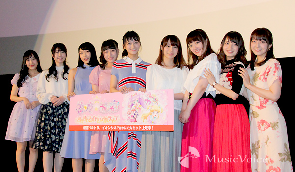 この映画は、人気ゲームから派生した『プリティーシリーズ』の最新劇場作品。『プリティーリズム」、『プリパラ」、『キラッとプリ☆チャン』に至る様々なライブ映像が詰め込まれたものとなっている。舞台挨拶に参加したのは今作の主要声優である林鼓子(桃山みらい役)、久保田未夢(萌黄えも役)、厚木那奈美(青葉りんか役)、茜屋日海夏(真中らぁら役)、伊達朱里紗(夢川ゆい役)、阿澄佳奈(春音あいら役)、大久保瑠美(上葉みあ役)、加藤英美里(彩瀬なる役)、森嶋優花(Run Girls, Run!)の9人。