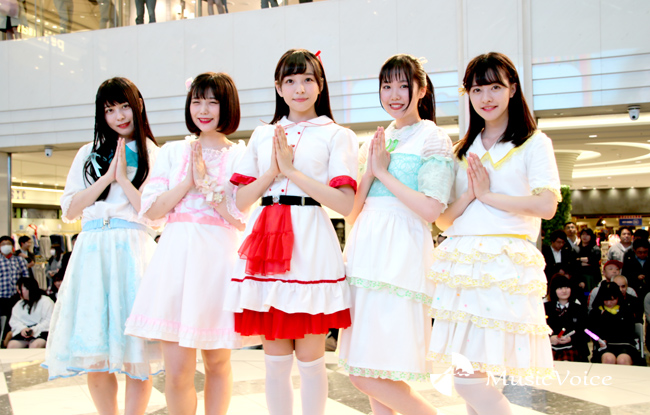 ミニライブは「HAPPY PARTY NIGHT」からスタート。<ハッピー 今夜はパーティーナイト>と楽し気に歌うメンバーの表情につられ、観衆も手拍子で盛り上がる。そのまま羽島めい(19)の「手を挙げて!」という煽りから「踊れっ!神宿カーニバル」を披露。熱いパフォーマンスを届けた。