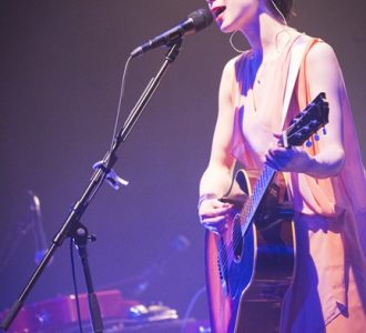 続いてエレキギターに持ち替え、全てを吹っ切るようなロックナンバー「Howling Wolf」から「結露」へ。そして第1部のラストナンバー「からっぽ」へ。しかし、しんと静まり返った会場の中で<東京 甘えてんな もっとちゃんとやれよ>という詞の後が続かない。何度試みても続かないその現状に、片平は言葉が出てこないと申し訳なさそうに観衆に告げる。しかしその言葉にフロアからは、続きをサポートする声と共に「里菜ちゃん、がんばれ!」と励ましの声が上がる。