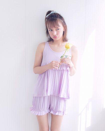 7月号では、わたなべ麻衣が、ルームウェアを着て、彼との胸キュン妄想ライフを演じた。麻衣自身も「着心地がよく楽ちんなうえに、女の子らしさがぐっとあがるこだわりの部分がたくさん。例えばフリルや、リボンなどもさりげなく、程よい甘さがツボです」とコメント。