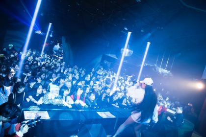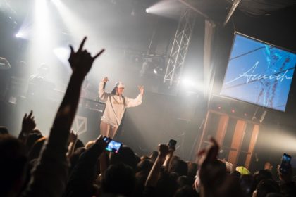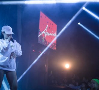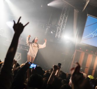 白いスウェットと深めに被った白いキャップ姿の彼女は。さながら白い天使。しかしサウンドはドープ、ラップはエッジィだ。彼女が登場しただけで、既に温まっていたフロアの熱気がさらに上がっていく。すかさず、2投目「Come Again」。携帯をかざすオーディエンスをAwichは野性的に煽っていく。