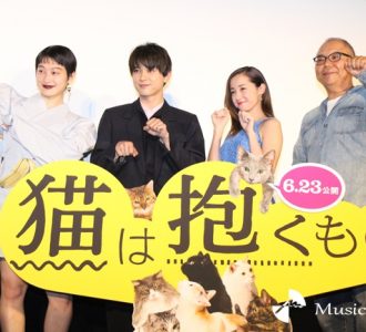 水曜日のカンパネラのコムアイ(25)が5日、都内でおこなわれた、映画『猫は抱くもの』の完成披露試写会に登場、本作で映画初出演となったコムアイは、撮影の経緯などを振り返った。この日は共演の沢尻エリカ(32)、吉沢亮(24)と、メガホンをとった犬童一心監督(57)も登壇した。