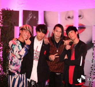 会場に入ると赤色の世界、現実世界から抜け出したかのような空間がそこには広がっていた。そこにはマンハッタン・マルガリータというカクテルを飲みながらゲストと談笑するメンバーの姿があった。もともとこの場所はフランスのバレエ教室をイメージしたスペースで鈴木重伸(Gt)はこの場所に何度か訪れたことがあり「こんなにイメージが変わるんだ」と驚いたという。