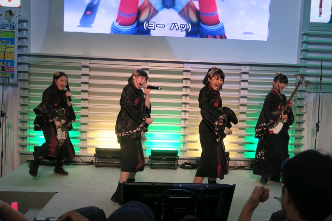 - 民謡ガールズ(その1):「キラリ☆夢音頭」を歌唱(左から、いずみ、ゆうあ、みのり、らむ)