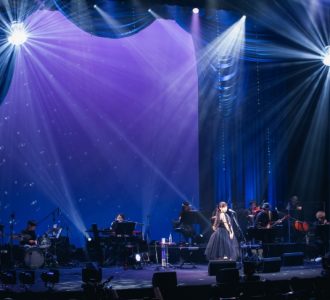 会場が暗転し、バンドメンバーに続いて吉澤がステージに登場。まだ暗いステージ上でスカートの裾をつまみ上げ挨拶。カウントから始まったのは「綺麗」。シックな黒いドレスに身をまとった吉澤。そして、天井から吊るされた2つのミラーボールが回転し、キラキラと光に満ちた空間を作り出し、まさに綺麗と声をあげたくなるような世界を作りあげた。そこに流れるストリングスのダイナミックなサウンドが臨場感を高め、その上で歌う吉澤の歌声をより生き生きとさせた。