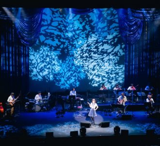 ステージ上は多くの楽器で埋め尽くされていた。今回は管楽器に加え、ストリングスカルテットも参加し総勢10人による大編成でのライブ。この楽器編成を見ているだけでも、これから始まるライブへの期待感は高まって行く。ホールならではの演出もワクワク感を増長させてくれる。