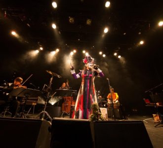 続いては「砂漠のトカゲ」。吉見征樹(Tabla)によるインドの打楽器・タブラが小気味良く鳴るなか、トカゲのぬいぐるみを抱えながら軽快に歌い上げる閣下。観客の手拍子も楽曲を彩った。そして、一転して、「見上げてごらん夜の星を」をしっとりと歌唱。