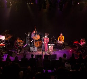 大陸を感じさせるスケール感で届けた「Zutto」では、伸びやかな歌でその世界観を余すことなく伝え、虫の音のSEから鍵盤ハーモニカを伴奏に「故郷」を歌唱。ステージは夕暮れを感じさせるオレンジ色に染まり、この場にいる各々の故郷を感じさせてくれるような歌声。そして、瀬尾高志(Contrabass)によるコントラバスのアグレッシブなフレーズにバイオリンや笛の音色が、それに応えるかのような演奏。