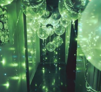 リキッドルームの天井にはクリエーター・Bashicoによるカラフルな風船で埋め尽くされ、いつものライブハウスとしての顔とは違った表情を見せていた。会場がオープンするとオーディエンスを迎えたのはDJ AYASHIGEによる妖艶なサウンド、そこにサブベースによる低音がブンブン体に響き渡る。オーディエンスはステージに食い入るように見入るもの、遠くから全体を見守る人など、それぞれが楽しんでいる様子。中にはスピーカーの前で、よりサウンドを浴びるオーディエンスの姿も見られた。